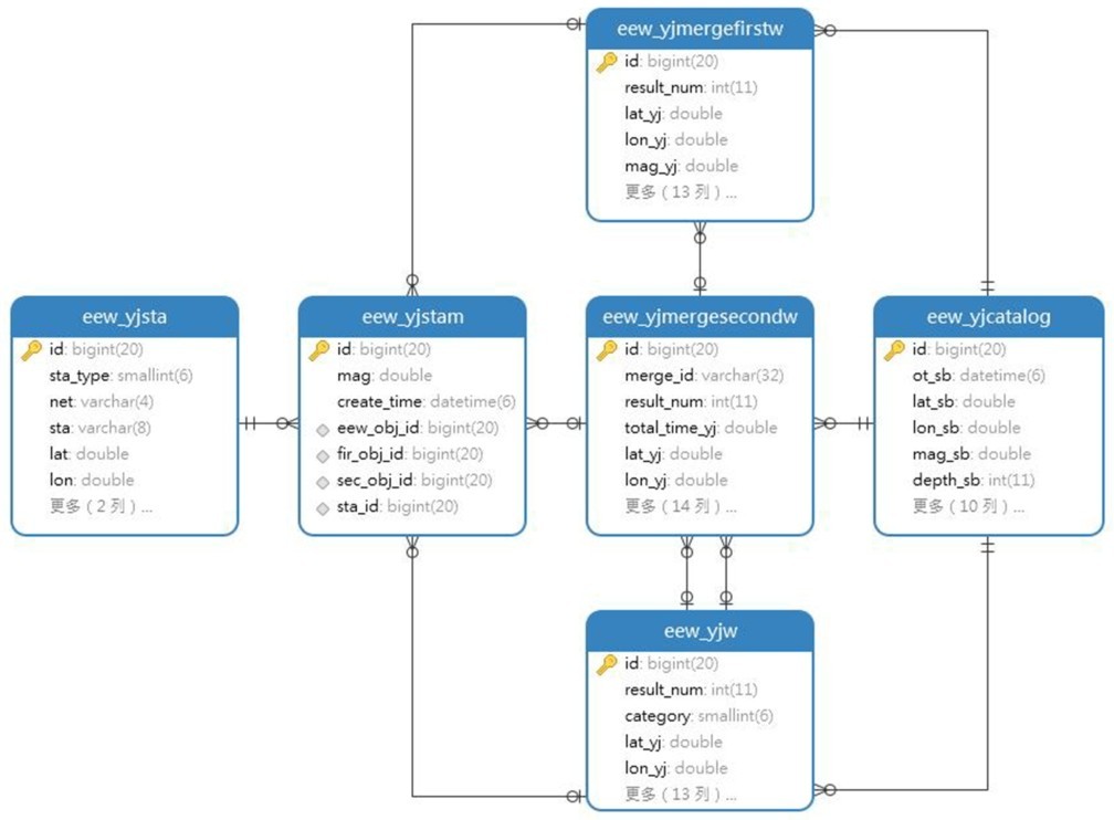 为了确保预警数据的安全和完整性,满足预警数据产出业务管理中多用户多角色的需求,地震预警数据产出服务平台采用MySQL关系型数据库进行开发设计。