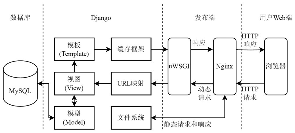 平台利用Django的路由(URL)功能将用户的请求分发到相应的视图函数进行处理,之后将处理结果返回到浏览器,并向用户展示处理结果。