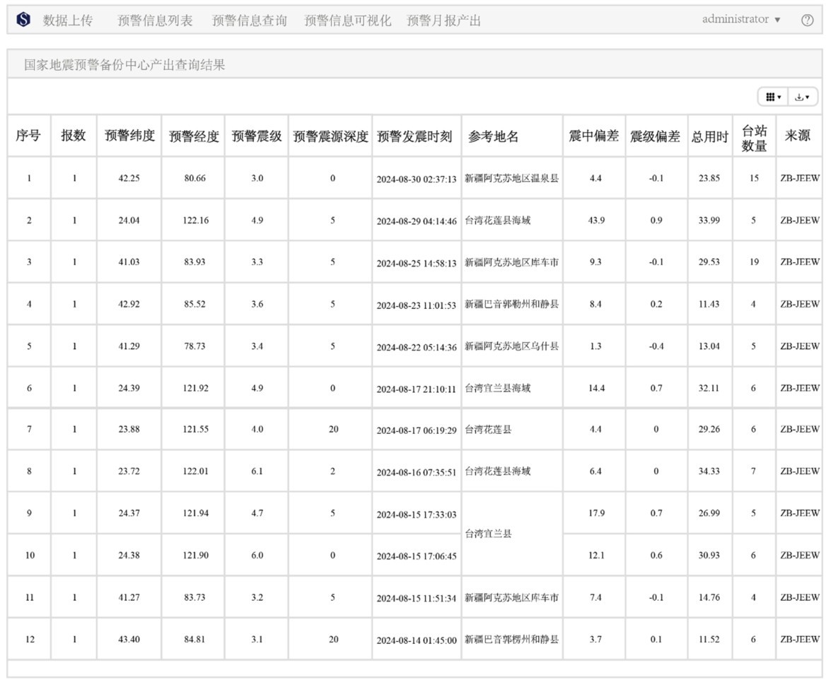 为了使地震预警数据更好地应用于业务化分析及科学研究,同时便于预警服务体系和内容的不断拓展,针对目前预警产出数据量庞大且服务相对单一的问题,系统构建多种产出成果的地震预警数据服务平台,从而满足国家及省级地震从业人员的服务需求,实现地震预警整体服务能力的提升。