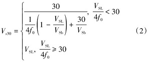 公式(2)中VS30值依赖于VSL和VSb值的设定。为了评估公式(2)中VSL和VSb值对VS30结果的影响,我们通过设定不同的VSL和VSb来分析VS30值。