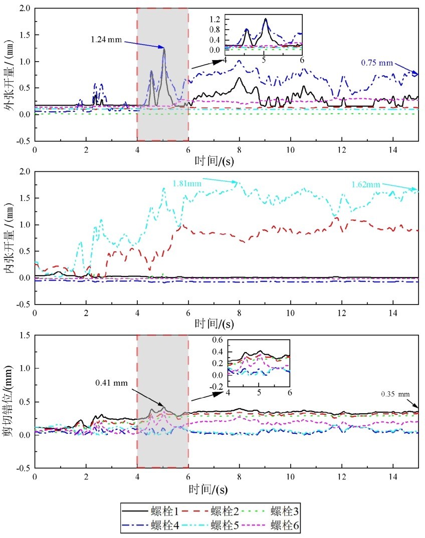 图7 管片接缝变形时程曲线Fig.7 Time history curves of segment joint deformation