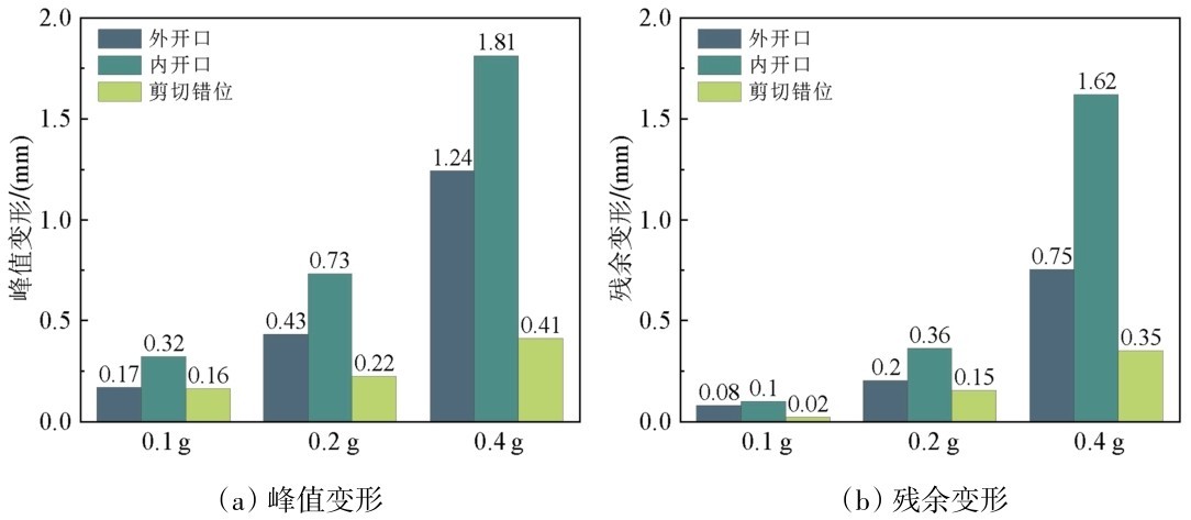 图8 盾构管片接缝峰值变形与残余变形Fig.8 Peak deformation and residual deformation of the shield segment joints